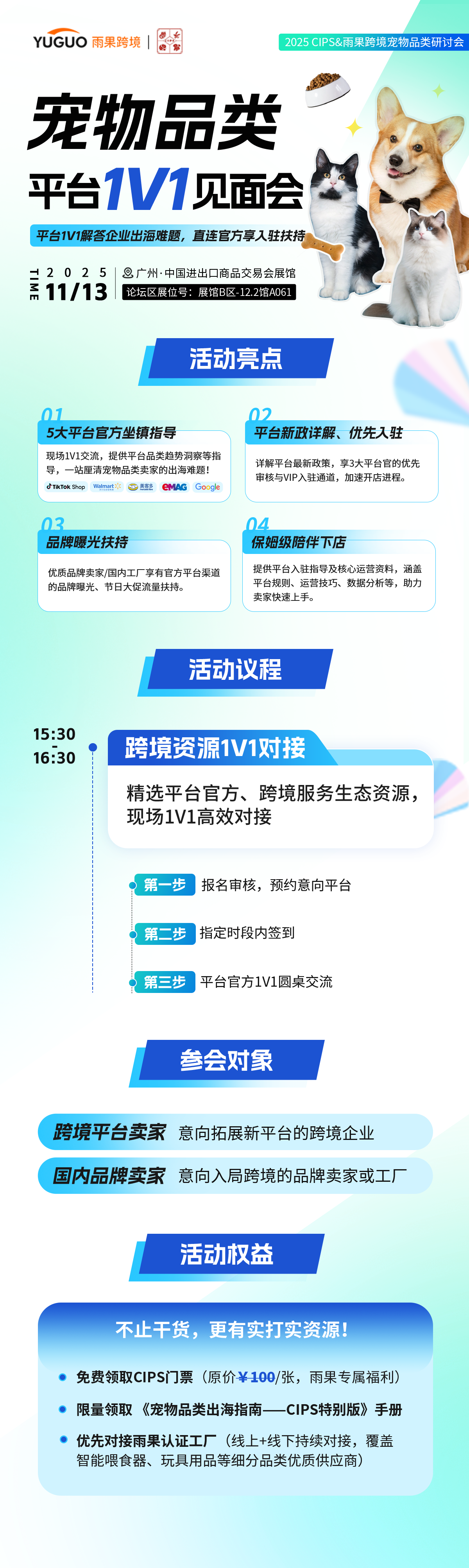 最新 2025CIPS&雨果跨境宠物品类研讨会——宠物品类·平台1V1见面会