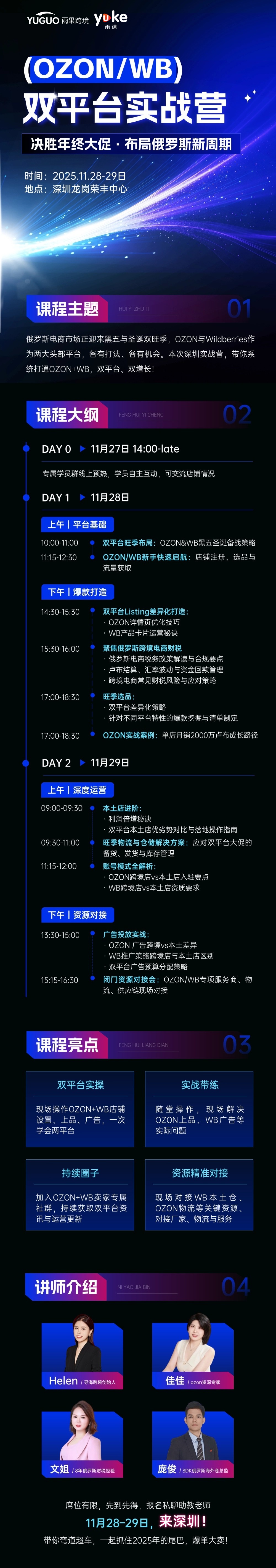 最新 OZON / WB 双平台实战营 | 决战年终大促,布局俄罗斯新周期