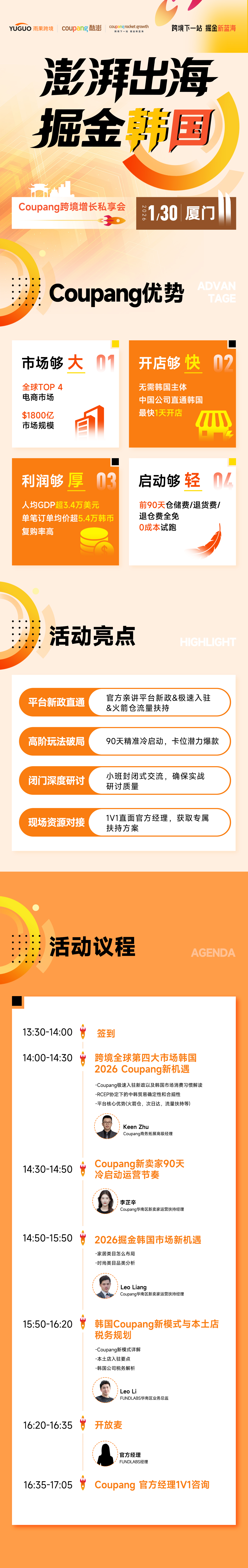 最新 澎湃出海,掘金韩国——Coupang跨境增长私享会·厦门站