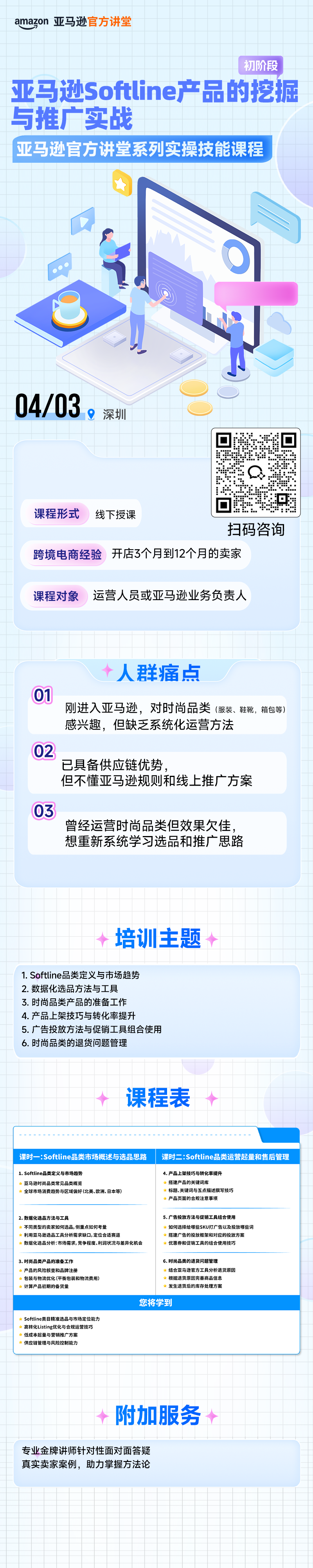 最新 【亚马逊官方讲堂系列实操技能课程】亚马逊Softline产品的挖掘与推广实战
