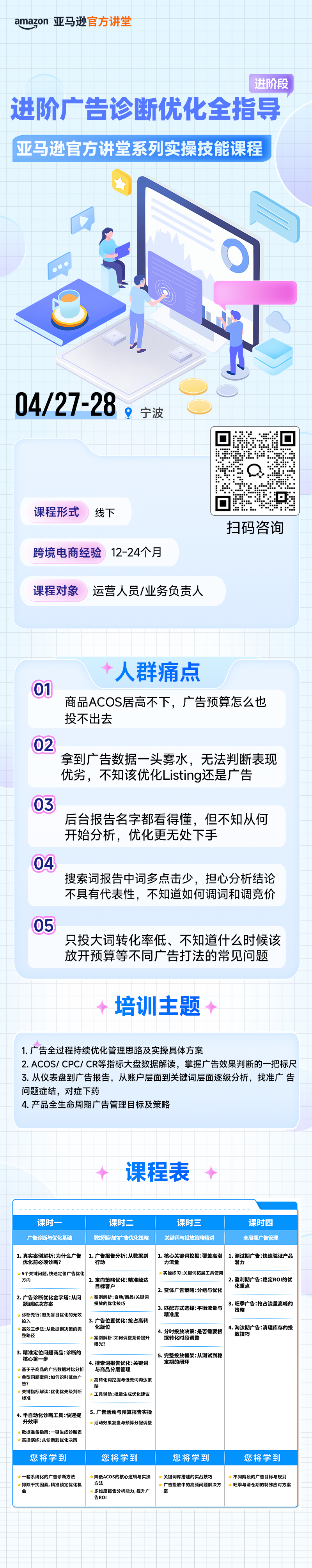 最新 【亚马逊官方讲堂系列实操技能课程】进阶广告诊断优化全指导
