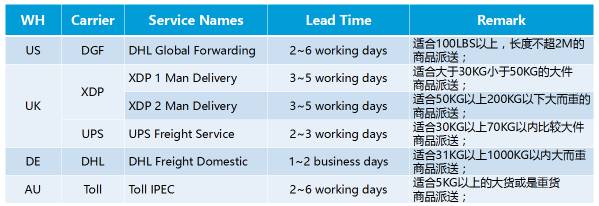 从品类上来讲,我们可以看到现在越来越多的跨境电商做大货、重货,整个市场竞争非常激烈,在整个品类上讲,如果你有好的货源,在平台上竞争的压力还是会小很多。比如说家具类的沙发、桌椅、储物柜、发电机、割草机,刚才看到的雕刻机,在15公斤、30公斤甚至更大重量的、更大体积的产品都要有更加适合的派送方式。比如说在美国的DHL,比如在英国的派送服务或者在UPS的服务,或者澳洲的Toll的服务都是可以支持大件产品的派送服务。也就是大家通过大件产品的尾程服务进一步拓展品类。