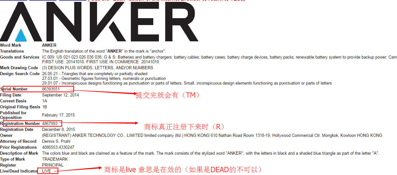TM标通常公示12月左右可以正式生效,由TM转化为R标,Registration Number出现