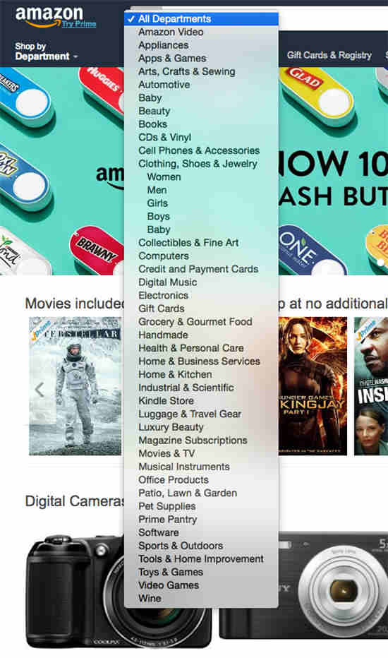 1、当在亚马逊上搜索某件产品时,消费者可能会指定一个特定分类搜索或搜索全部分类: