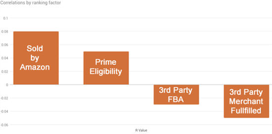 在研究中,Ripen将排名因素赋值为R,当R值越高,订单的执行方式就更可能让产品搜索结果靠前。如下图所示,订单执行方式与亚马逊搜索排名之间有很大的关联: