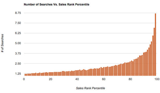 研究指出不仅sales rank与SERP(搜索结果页)有关,同时畅销产品在搜索中的排名也会靠前。在亚马逊上,一件产品的sales rank提高了,搜索结果显示该产品的几率也会提高。