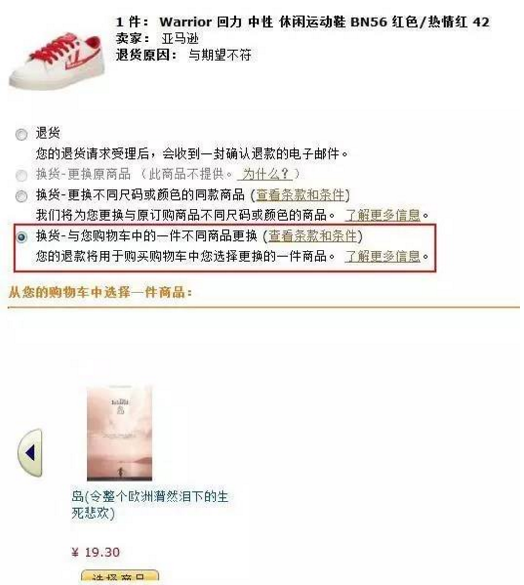 如果你想要更换完全不同的商品,需要将新商品加入购物车后才能进行此项更换,但是只能换由亚马逊直接销售和发货的商品。