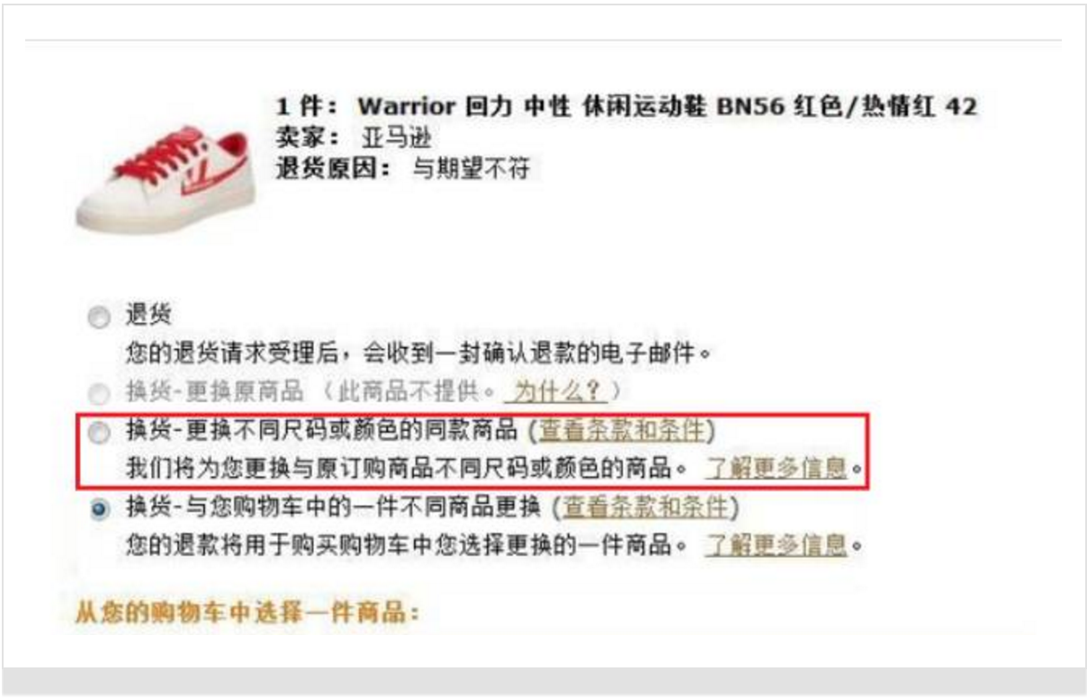 换货条款及条件(目前,亚马逊仅为符合以下条件的商品提供自助在线换货服务)