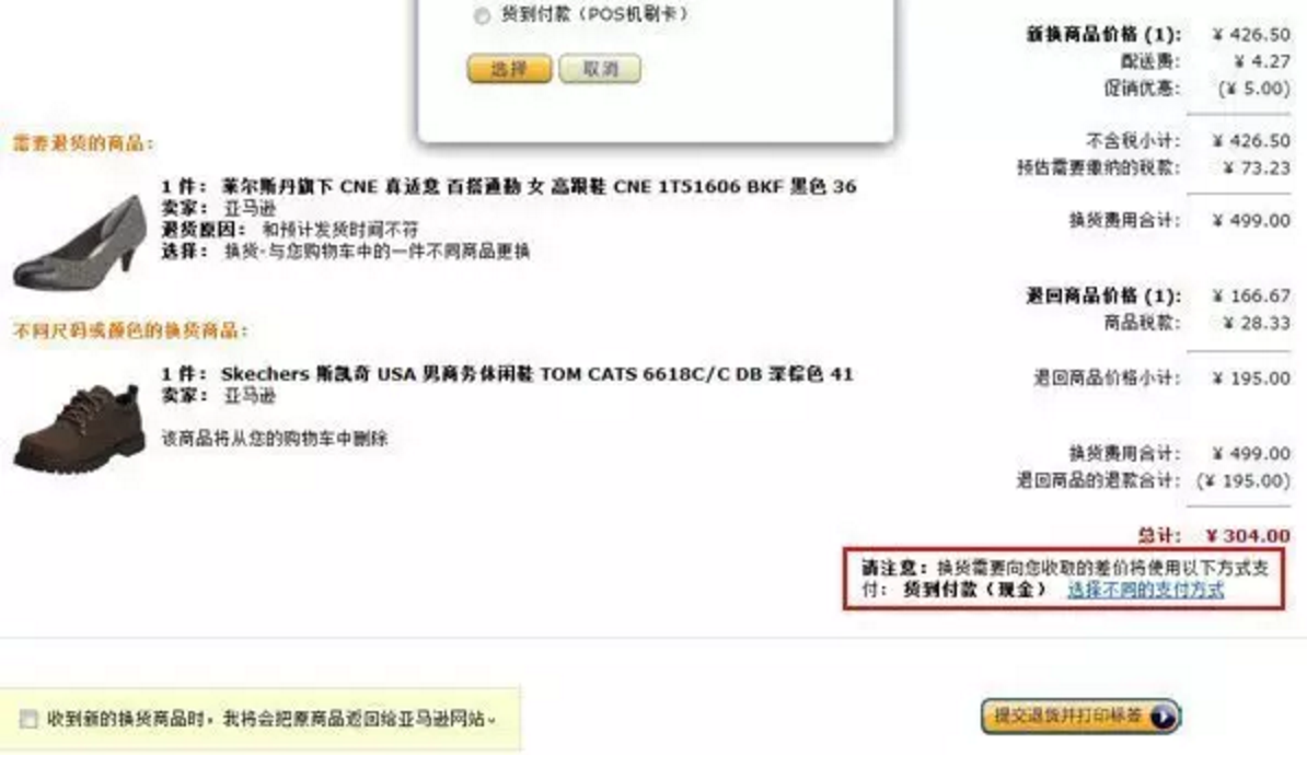 如果你选择更换的商品价格低于原商品:待退换商品成功入库后,亚马逊将通过相应的支付方式进行差价返还。
