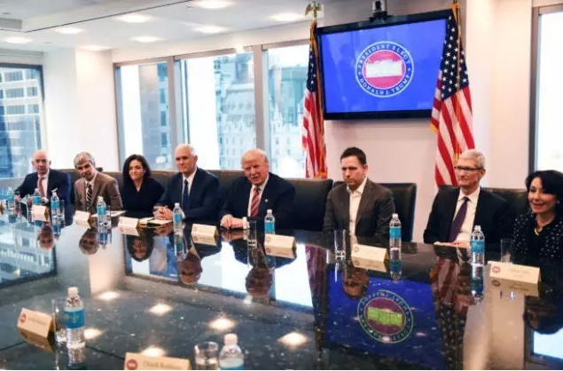 (特朗普胜选后那场著名的自我介绍会:Tech Gods to the Tower;彼得·蒂尔发起和组织,坐在特朗普左手边)
