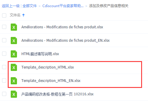 选择“添加及修改产品信息相关”文件夹中的名为Template_description_HTML的表格并下载,带EN的为英文版。