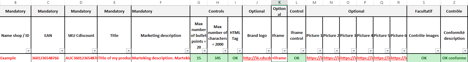 在M-R栏,您可以为您的产品添加额外的6张图片,只需要将图片链接分别填写在这几栏中即可。