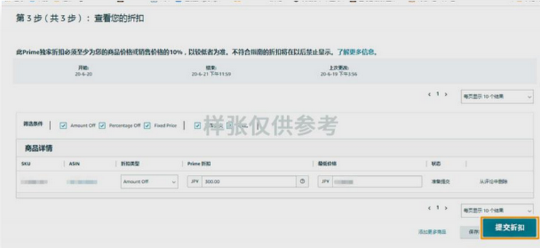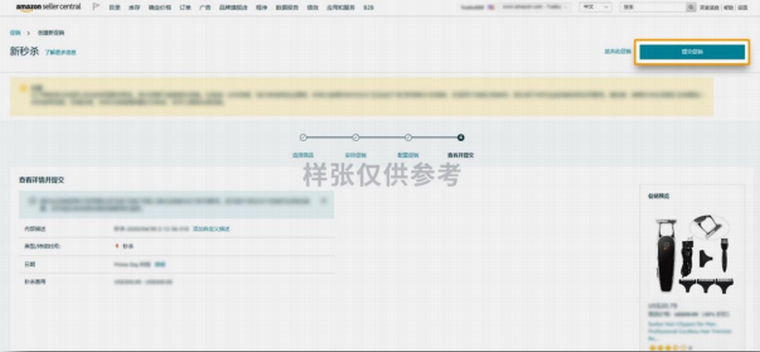 第四步:查看您创建的秒杀信息,确认无误后即可点击“提交促销”,完成秒杀创建,并等待亚马逊通过秒杀审核;