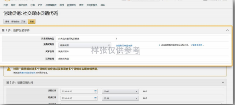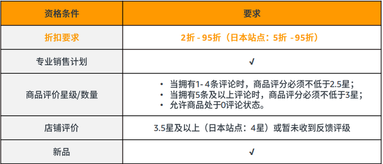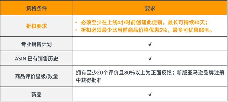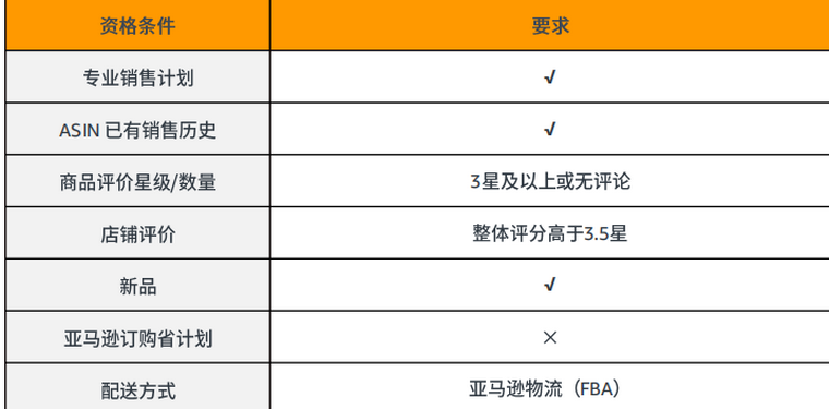 此工具目前仅在美国站点且仅面向已经在新版亚马逊品牌注册中获得批准的卖家或者获得正面反馈评级的专业卖家(卖家账户中至少有20个评级,且80%以上的反馈为正面反馈)提供。不满足此条件的卖家暂时无法在卖家平台中使用此促销工具;