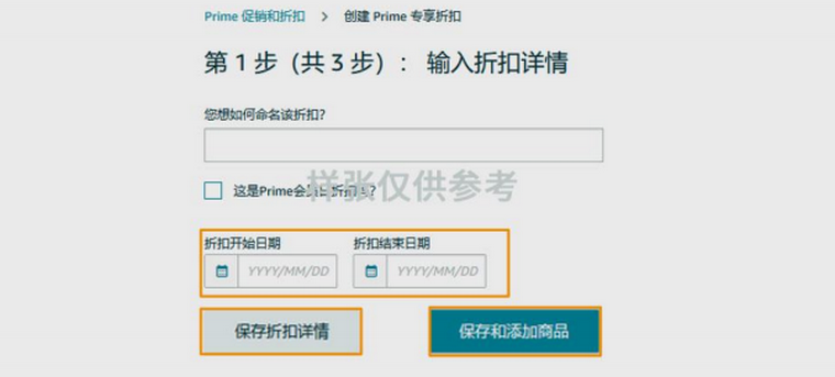 第二步:点击“Prime专享折扣>创建折扣”输入折扣名称和日期,然后上传填写好的电子表格;