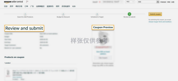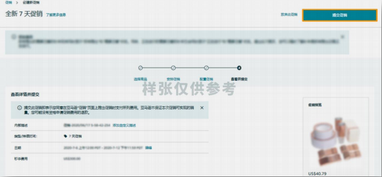 第四步:检查信息无误后提交促销,等待亚马逊通过7天促销创建审核。