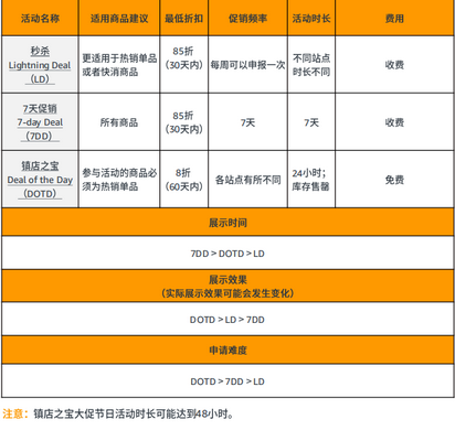 镇店之宝(DOTD, 大促期间有时也称为Spotlight Deal)是指参与活动的一个或一组高需求的商品,仅在指定的一天内设有大幅折扣的促销活动。而作为促销中流量最高、申报要求也最严格的展示活动,大部分站点的镇店之宝目前实行邀请制,且必须通过客户经理申报。