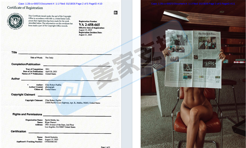 本案是keith律所代理美国摄影师Clint Robert Padilla 发起的版权维权案件,共涉及其于2025年8月13日获得美国版权认证的VA0002458675和VA0002458665的两个作品,未经授权使用则会面临TRO冻结风险。目前该案件处于前期立案阶段,涉案的19个店铺账户资金暂未冻结,需要名单的卖家可联系我们获取,并排查下架高危作品。
