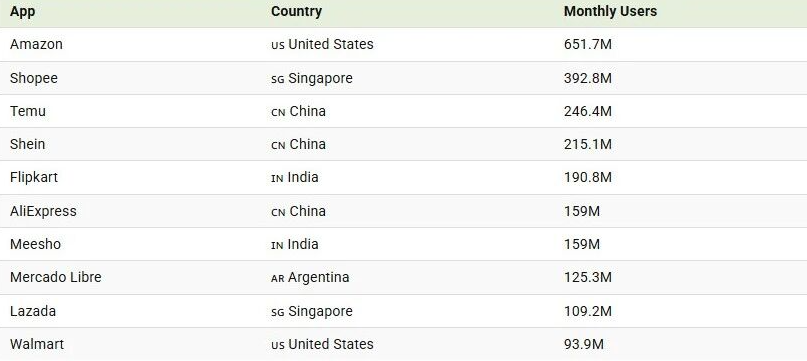 Similarweb近日发布了《2025全球电商App月活榜》,其中揭示了一个不容忽视的事实:全球电商的权力结构正经历一场静默但深刻的重组。全球电商月活跃用户数突破20亿大关,亚马逊以6.5亿月活稳居第一。