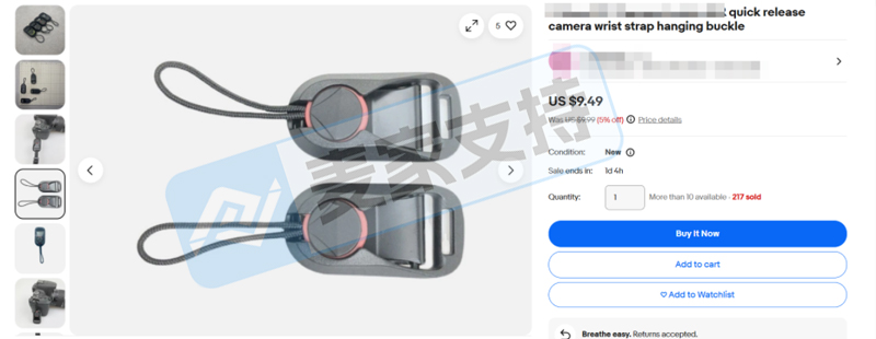 目前,该案件已于1月14日获批TRO临时限制令,并于1月21日向法院递交了延长TRO时间申请,通过原告返回的的侵权证据显示,维权专利为一款名为相机背带连接机制及使用方法的发明专利,专利号为:9247787,只要功能与该产品相似,则大概率会被判定为侵权。如果您已经收到了平台的TRO冻结通知,可以联系我们获取解决方案!