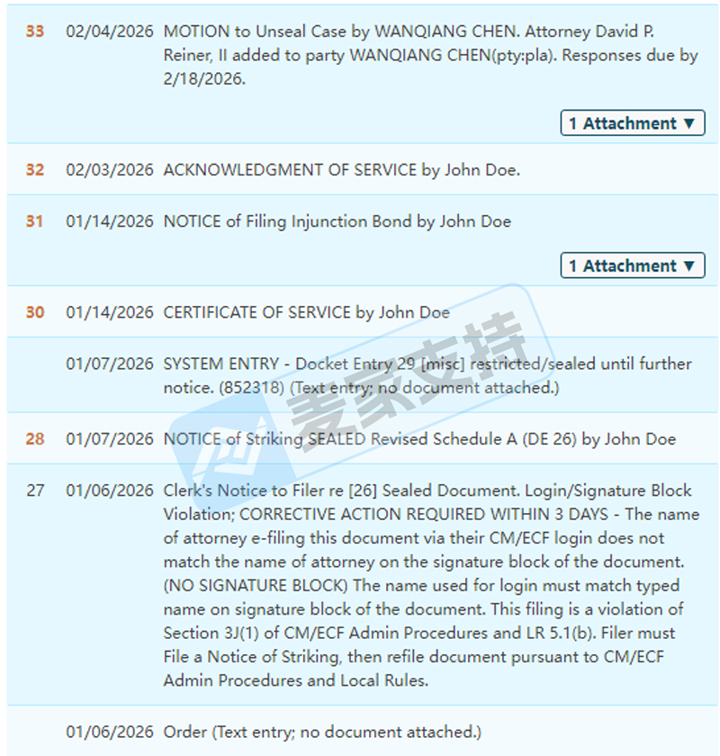 图片来源:Wanqiang Chen 官网案件进展: