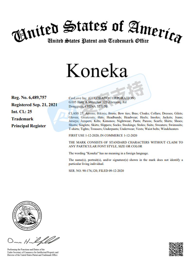 本案主要针对其商标号为:6489757的Koneka服饰商标发起,未经授权使用则会面临TRO冻结风险!本次案件共有131个亚马逊店铺涉案,需要名单的卖家可联系我们获取自查,并做好进一步应对措施!