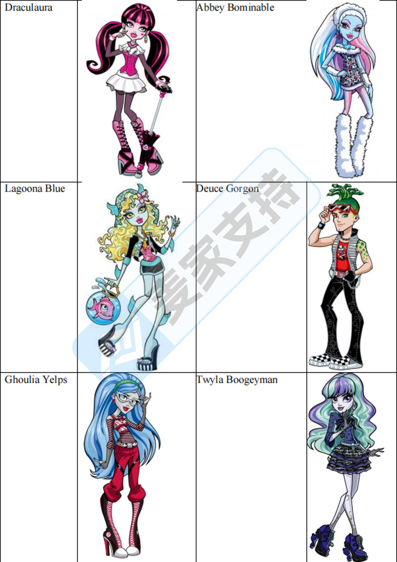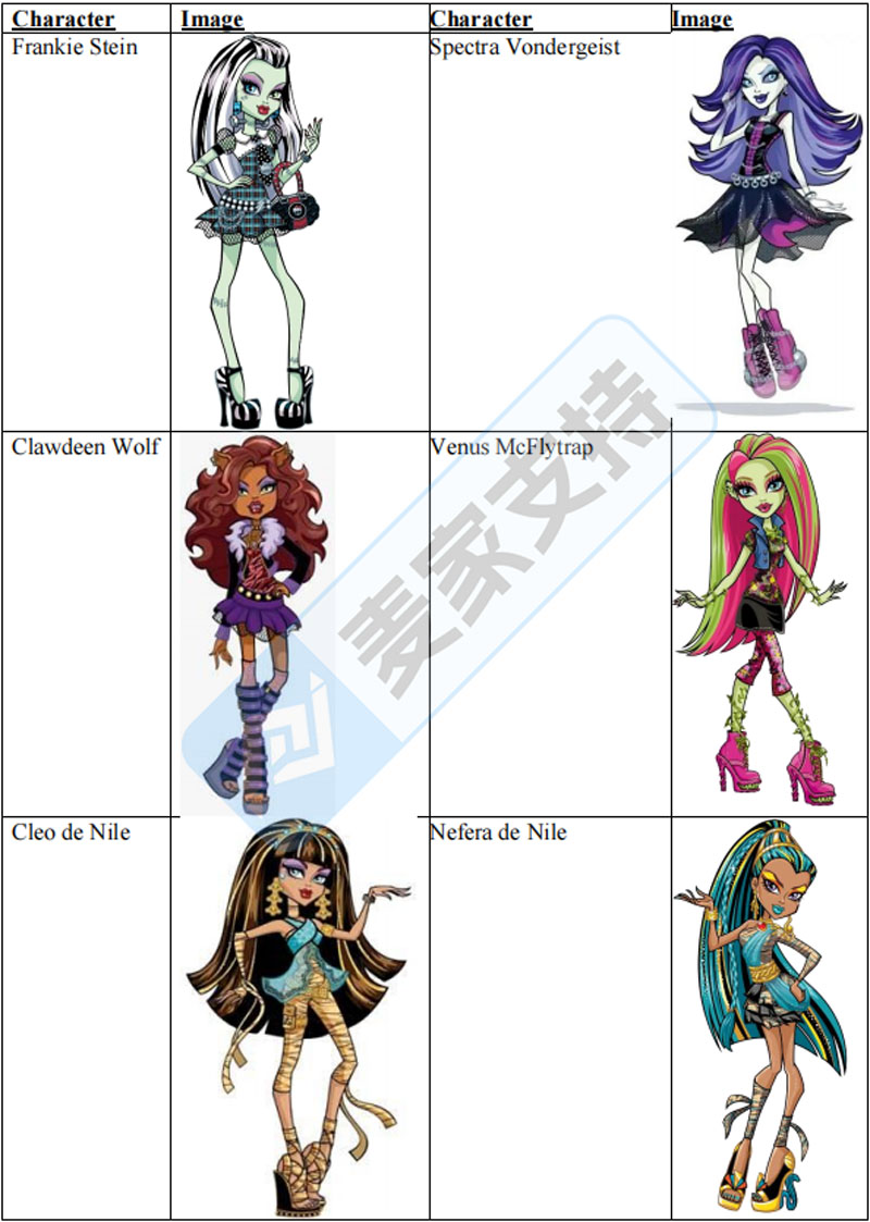 GBC律所再度出击,代理Mattel, Inc.发起全新商标&版权维权案件,涉案品牌是备受青少年喜爱的Monster High精灵高中!此次维权剑指角色版权以及文字、图形商标未经授权的侵权行为,涉及产品线极为广泛,玩偶配件、主题游戏屋、玩具汽车、图书、电影、游戏、拼图、服饰、饮品、糖果、食品等众多领域均在其列。