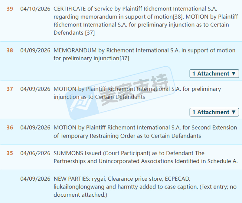 本案是Flener律所于2025年3月代理Richemont在伊利诺伊州发起的Cartier卡地亚商标&专利维权案件,该案件历时一年,于26年3月16日才获批TRO临时限制令,并于4月9日向法院递交了初步禁令申请,涉案的170名被告账户资金已被TRO冻结!