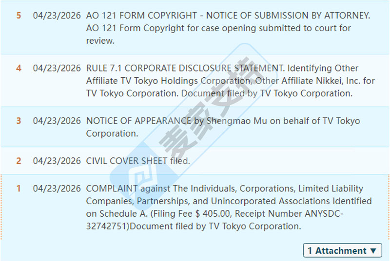 本案是TV Tokyo Corporation委托Whitewood 律师针对其Gintama银魂版权未经授权使用的侵权行为,向美国纽约南区联邦地区法院提起的版权诉讼。TV Tokyo Corporation 持有美国版权局登记号为PA 2-532-838的动画版权,指控境外匿名卖家未经授权,通过跨境电商平台销售其周边的侵权行为,目前案件处于立案初期,暂未获批临时禁令。麦家支持建议跨境卖家尽快排查,并下架高危链接,提前做好应对措施!