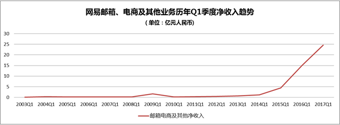 相对于拥有众多电商促销日的第四季度,包含中国农历春节带来的长期物流停顿等诸多不利条件的第一季度往往被市场认为是电商淡季,往年经验以及2017年第一季度各海关试点口岸的业绩表现也佐证了市场的这一判断。 但2017年第一季度网易邮箱、电商及其他业务的净收入为24.60亿元人民币基本与2016年第四季度的24.75亿元人民币持平,这一逆于市场常态的表现超出了行业预期。考虑到第一季度有部分较高收益的网易部分电商业务收入下降,也更好展现出了以网易考拉海购为主的整体电商业务增长。