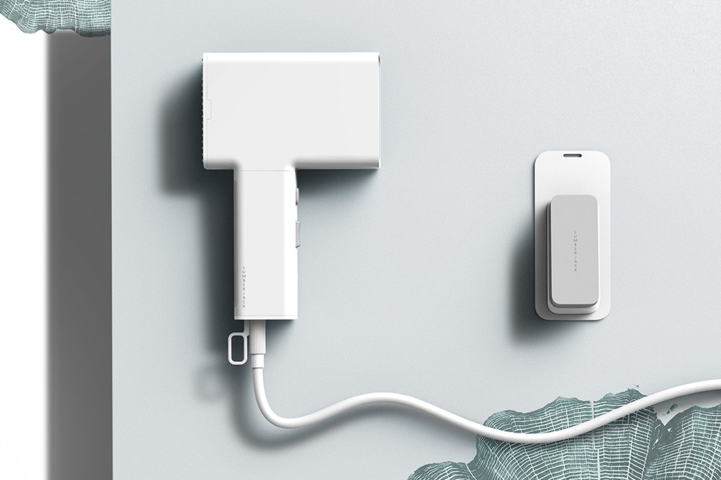 然而,这个怪异的吹风机可能正好解决了我们的问题,而且它以如此巧妙的方式进行。“伐木工”的灵感来自于伐木工如何将斧头夹在一块木头上,它优雅地安装在挂在墙上的摇篮上,使吹风机在不用的时候有地方居住。