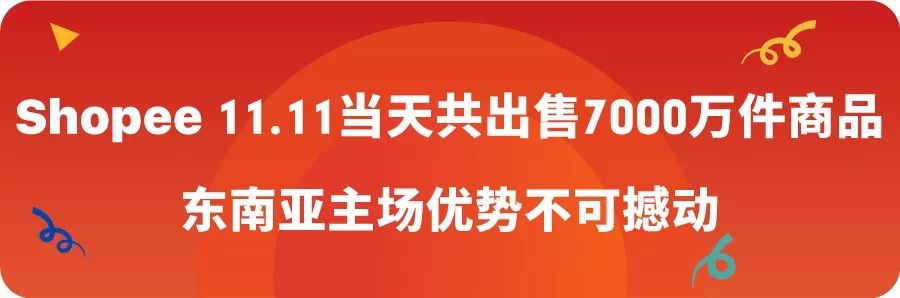 Shopee跨境业务总经理刘江宏表示:“Shopee感谢每一位跨境卖家及合作伙伴在11.11大促期间的贴心陪伴,让我们再度缔造佳绩。面对即将到来的12.12庆生大促,Shopee将以更加丰富的产品及有趣的玩法,引领东南亚年终购物盛况,请大家共同期待!”