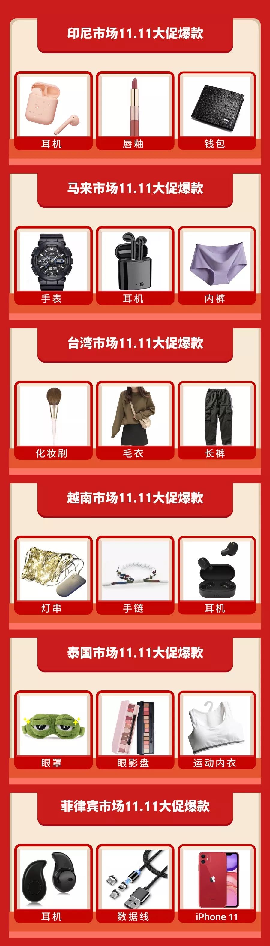 东南亚和台湾市场11.11大促热卖品情报来袭,款款爆品助你顺风出海。