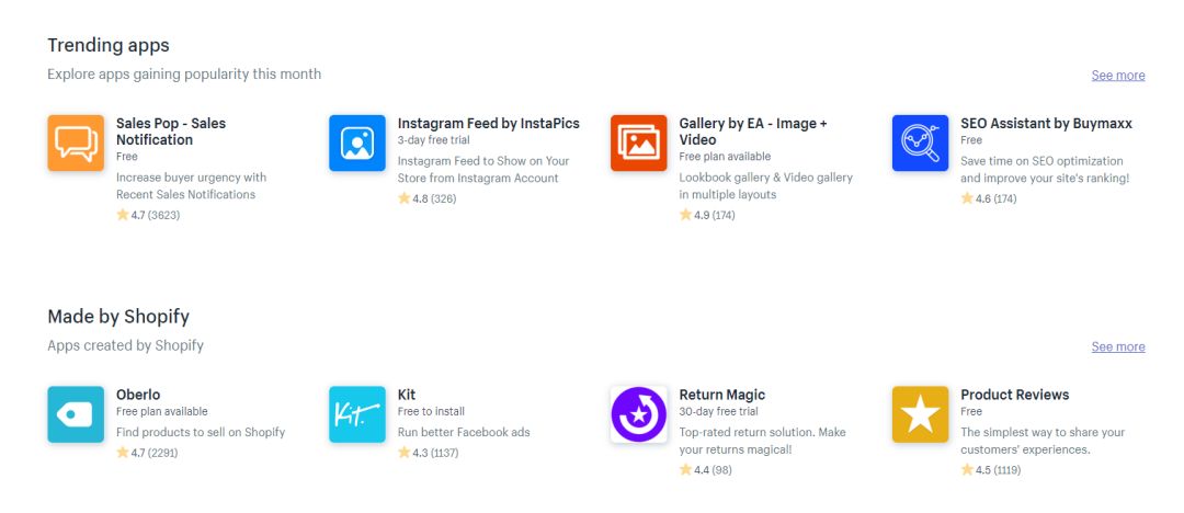Shopify的app商店有很多功能插件,有官方开发的也有第三方开发的,而且一个功能有多个插件,你需要的功能基本都能在这里找到。但是好的插件基本都需要另外购买,一年下来也需要好几千块钱。而且因为开发者是第三方,遇到问题也只能找第三方公司,导致沟通上面会容易出问题。