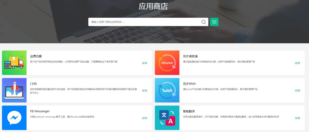 Ueeshop有一个应用市场,亚马逊速卖通等平台产品同步、Facebook店铺、Google Shopping这些功能都有。但是跟Shopify比起来还是少很多,优点是不需要另外付费就能使用这些功能,而且全部都是Ueeshop自己开发的,一键开启,基本没有什么问题。