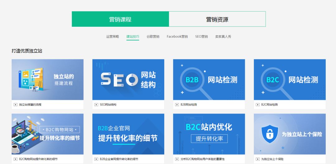 刚开始接触独立站的卖家也可以选择Ueeshop,因为他们有一对一的顾问,基本解决你操作、收款和推广等问题。后台还有几十节独立站的推广运营课程。