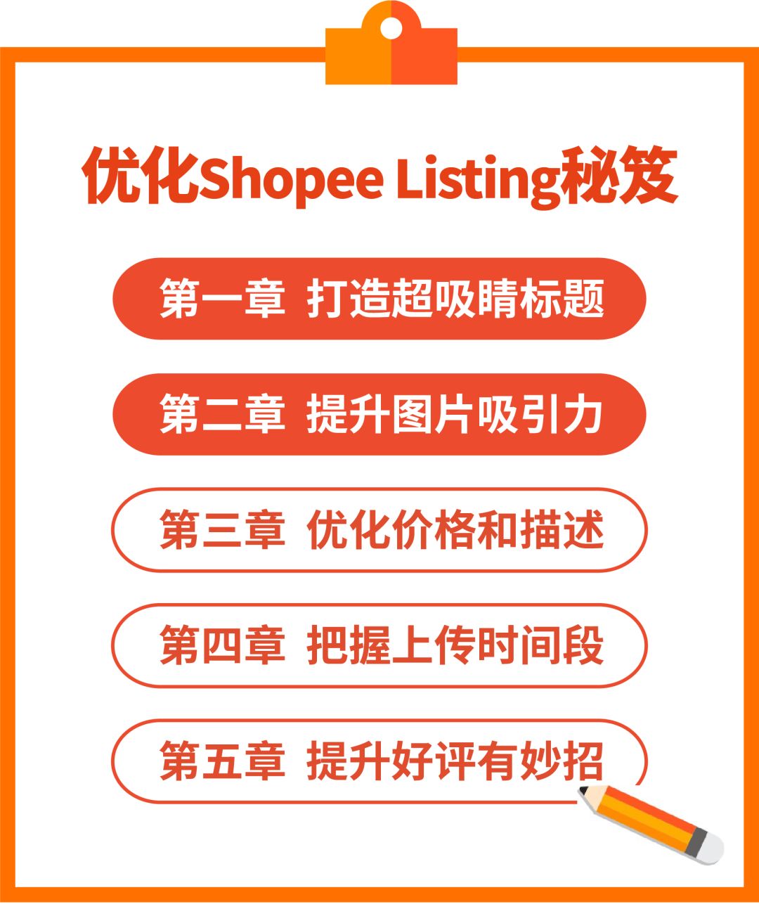 既然优化Listing如此重要,卖家旺季备战大促时当然不可掉以轻心。小编特别从Shopee跨境业务MSM团队“软磨硬泡”求得这本《优化Shopee Listing秘笈》分享给广大卖家。卖家朋友们,准备好记笔记了吗!