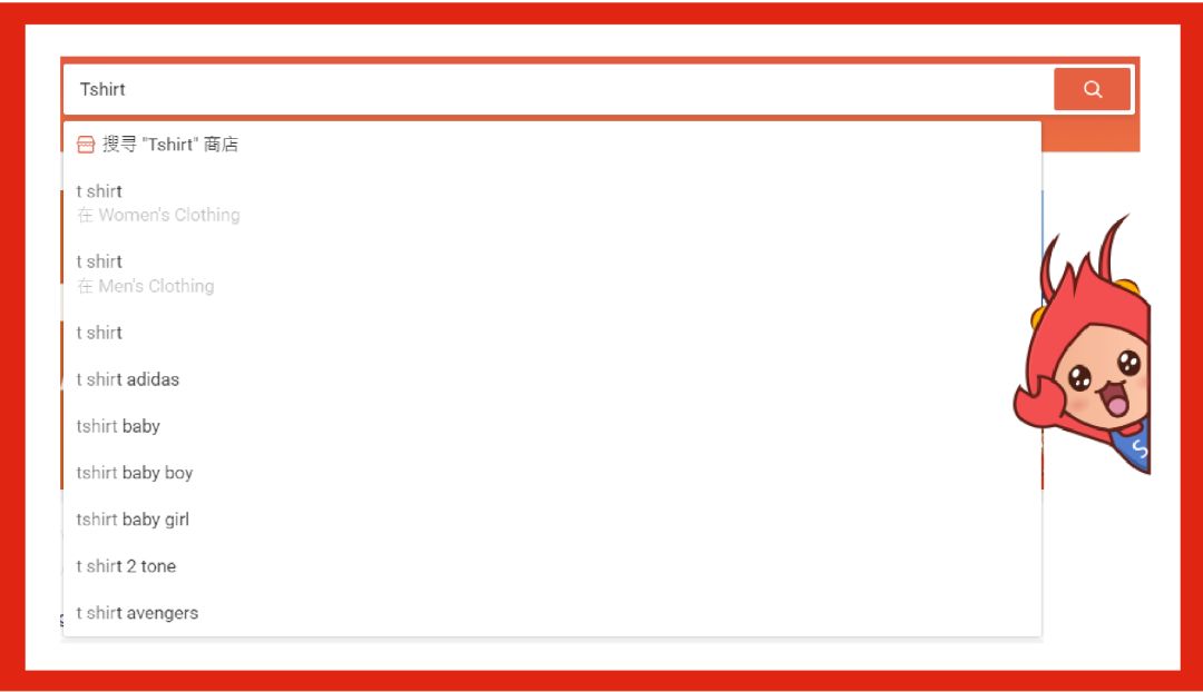 与其挠破头,不如搜一搜!进入Shopee前端界面,在搜索框输入某个产品词,比如Tshirt,会自动推荐搜索词组。这里推荐的修饰词不仅和查询的产品词相关,还是Shopee近期热搜的词组。