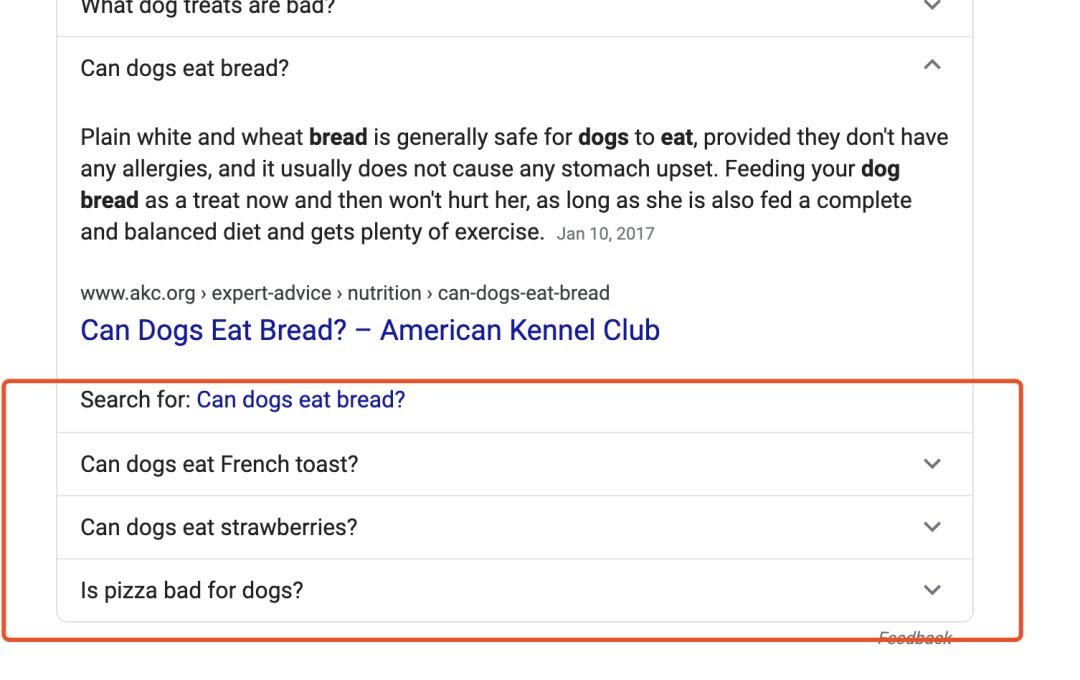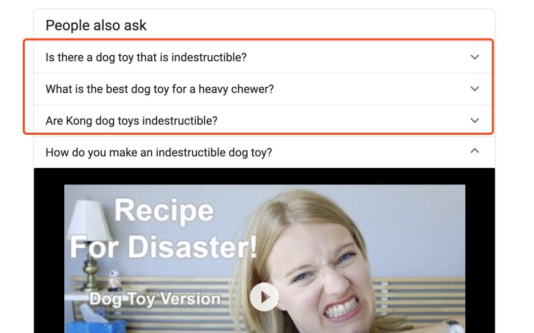 惯例科普一下,PAA是People Also Ask的简称,也就是当用户搜索关键词的时候,部分关键词会出现如下图所示的问答链接。