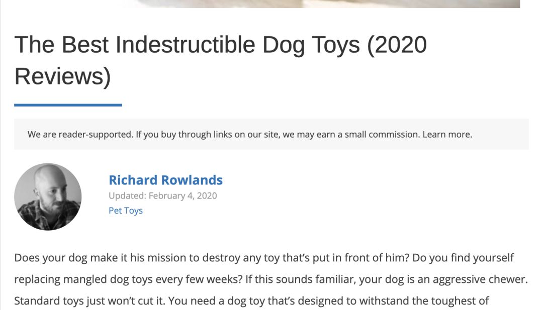 很显然,他是个Affiliate的站点,介绍Indestructible Dog Toys的。