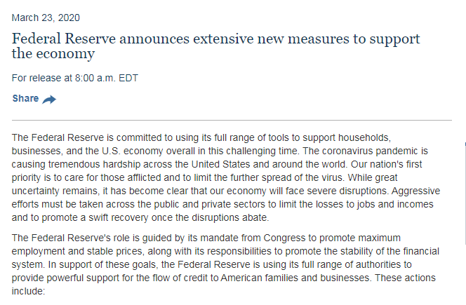 在美国人都要直指川普骂娘的时候,美国当地时间23日,美联储宣布开启无限量QE(量化宽松),将会按照需求无限量购入美债和住房贷款MBS。换句话说,就是开启了无限印钱放水模式。