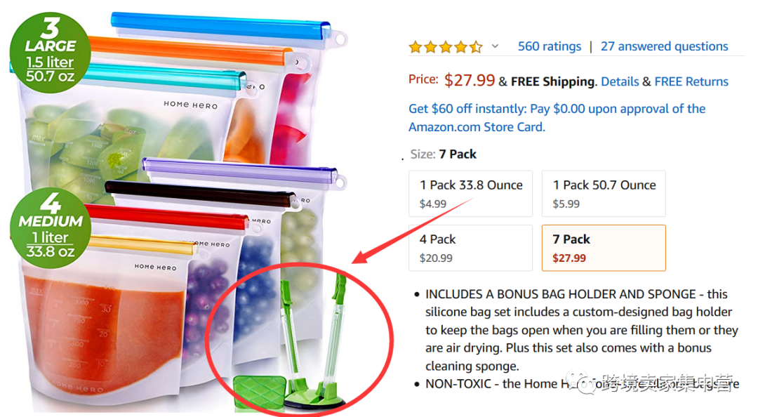 再比如说这款厨房食品袋,卖家在出售袋子的同时,还随机赠送了袋子的支撑工具。