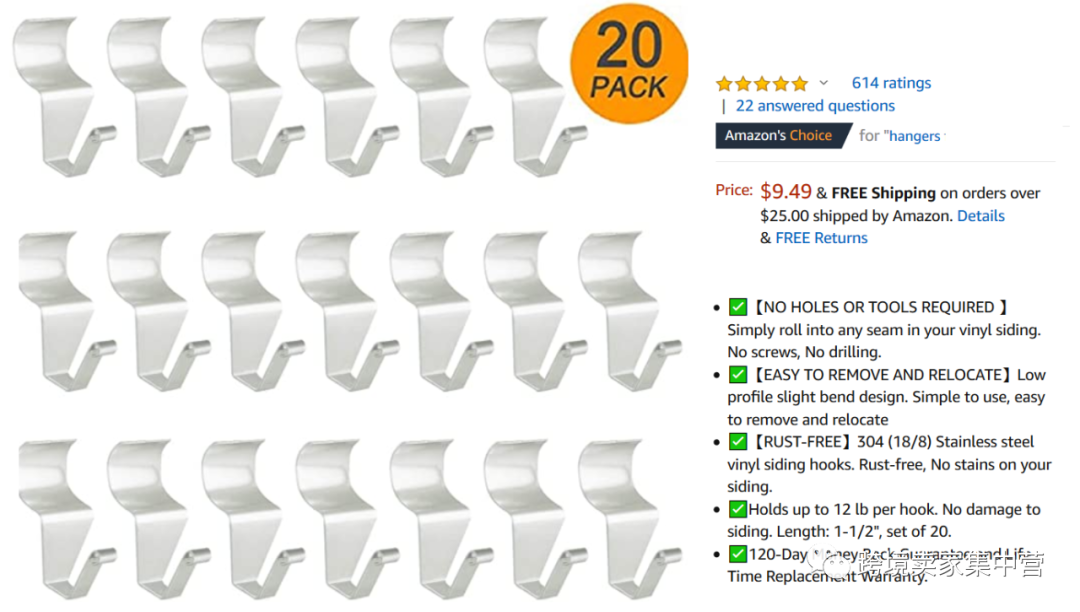 再比如说这款挂钩,在美国市场上普遍都是6只装和10只装的时候,这位卖家直接推出20只装的新包装,属于是产品数量上的创新。