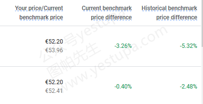 绿色 below benchmark price:销售价格至少低于参考价格的1%。