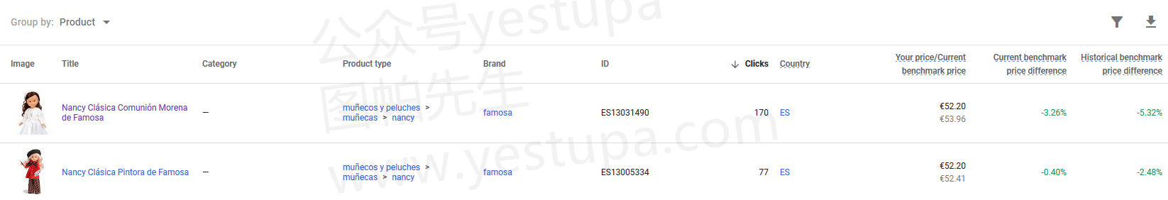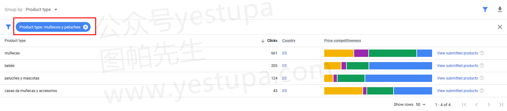 为了全面了解每种产品的竞争力,你可以选择按产品分组选项。