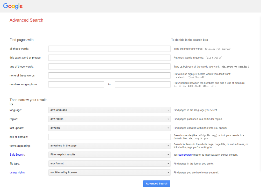 https://www.google.com/advanced_search谷歌高级搜索的网址
