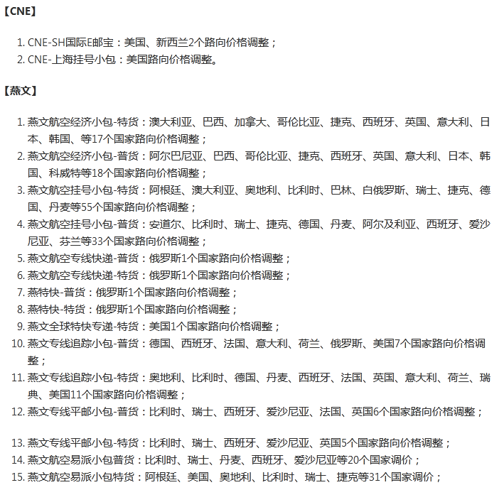 WishPost部分物流渠道新增路向及路向价格调整如下: