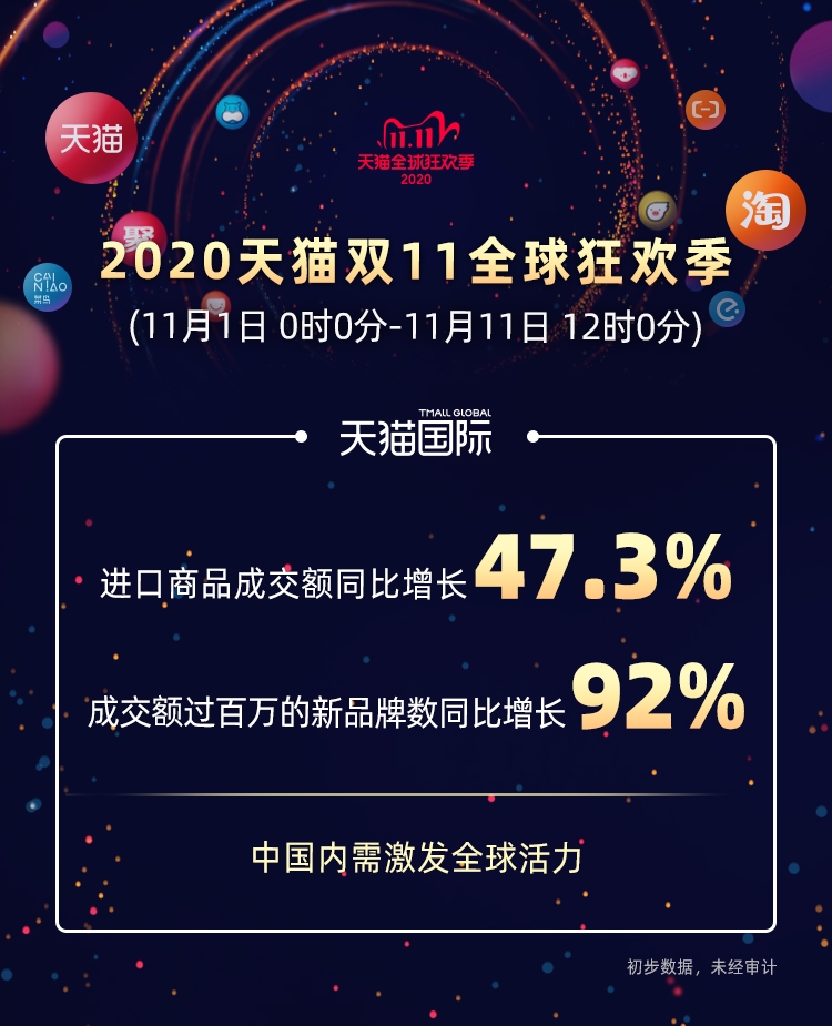 在全球疫情与世界经济仍然面临不确定性时,中国数字经济活力与内需潜力吸引海外品牌加速入华,寻求新增长。今年,有2600多个新品牌、120万款进口新商品通过天猫国际首次参加双11。