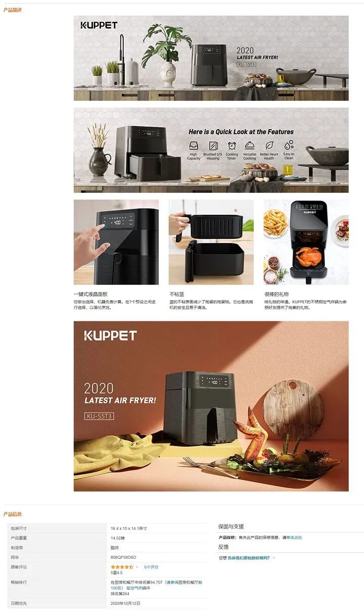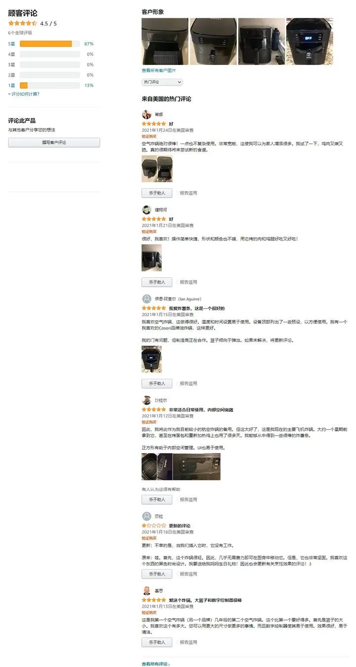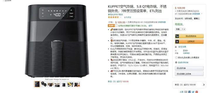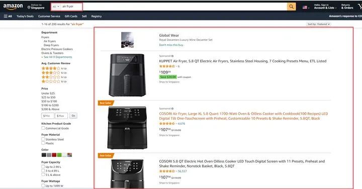 假设我想在亚马逊购买“空气炸锅”,这时候我就会去亚马逊的搜索框搜索“空气炸锅”这时候就有很多相关的产品出现。