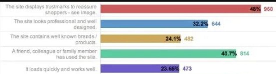 我们可以看到调查结果,由此针对这6个方面,我们也可以进行网站调整,建立信任感。